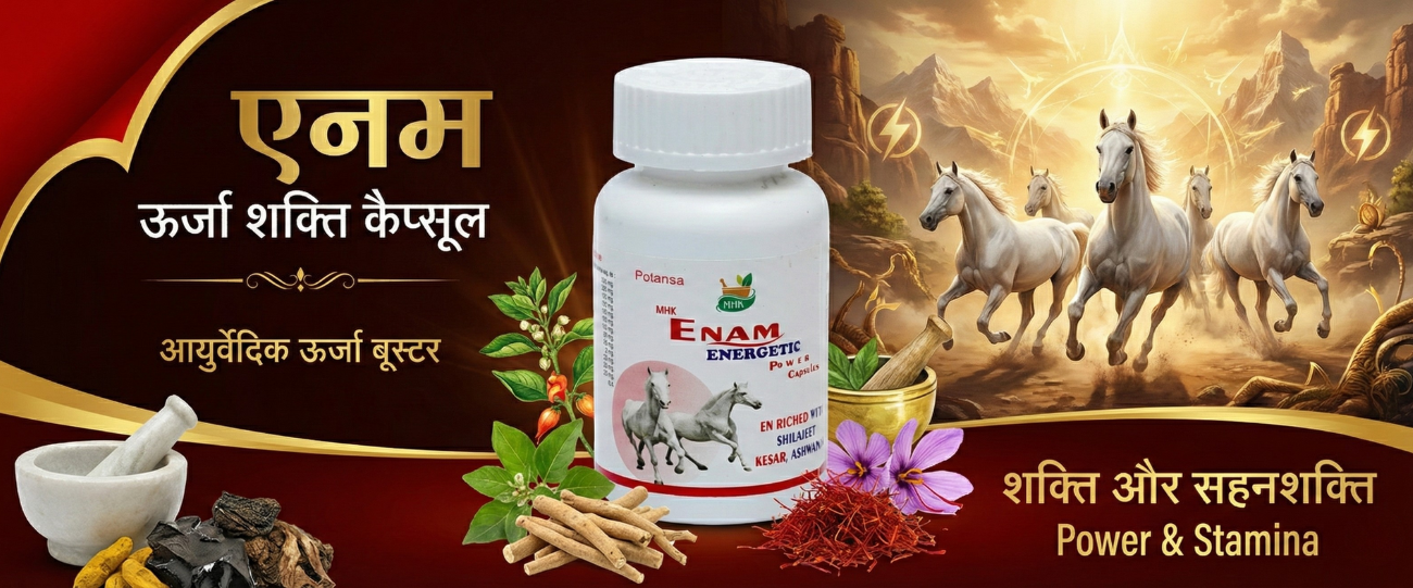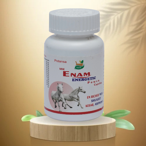 MHK Enam Energetic Capsules are formulated to boost physical strength, stamina, and overall energy. Enriched with Shilajit, Kesar, Ashwagandha, and other potent herbs, it helps enhance endurance, reduce fatigue, and promote vitality in men.